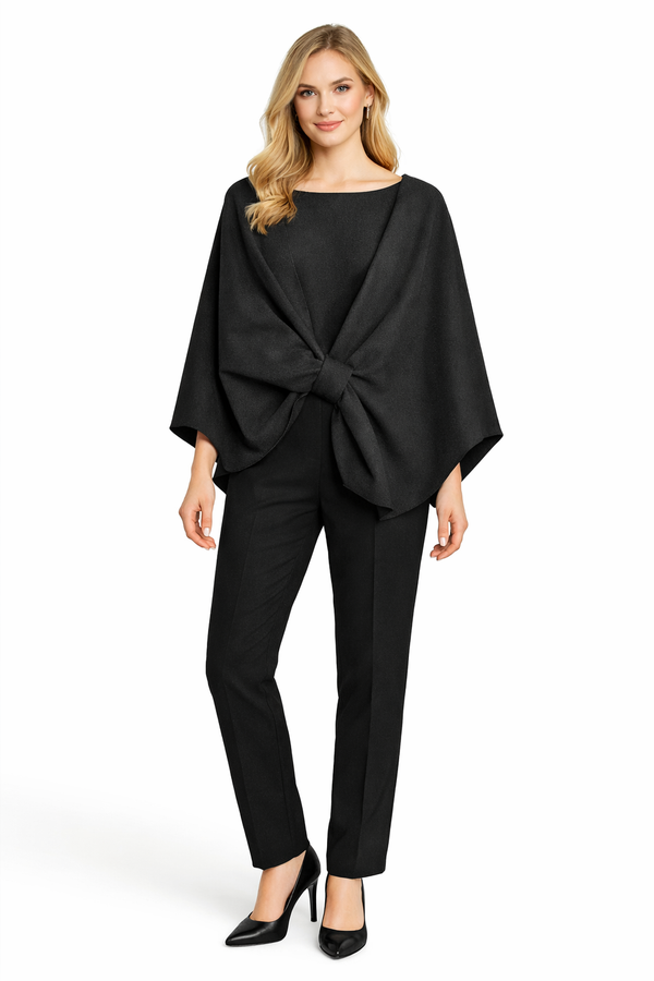 Women’s Black Knot Front Cape Top with Wide Sleeves | Elegant Evening Statement Wear