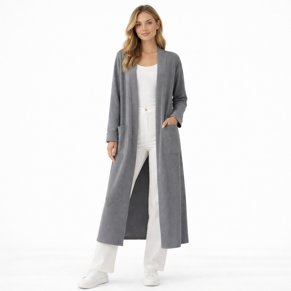 Women’s Long Ribbed Open Front Cardigan with Pockets | Casual Everyday Layering Coat