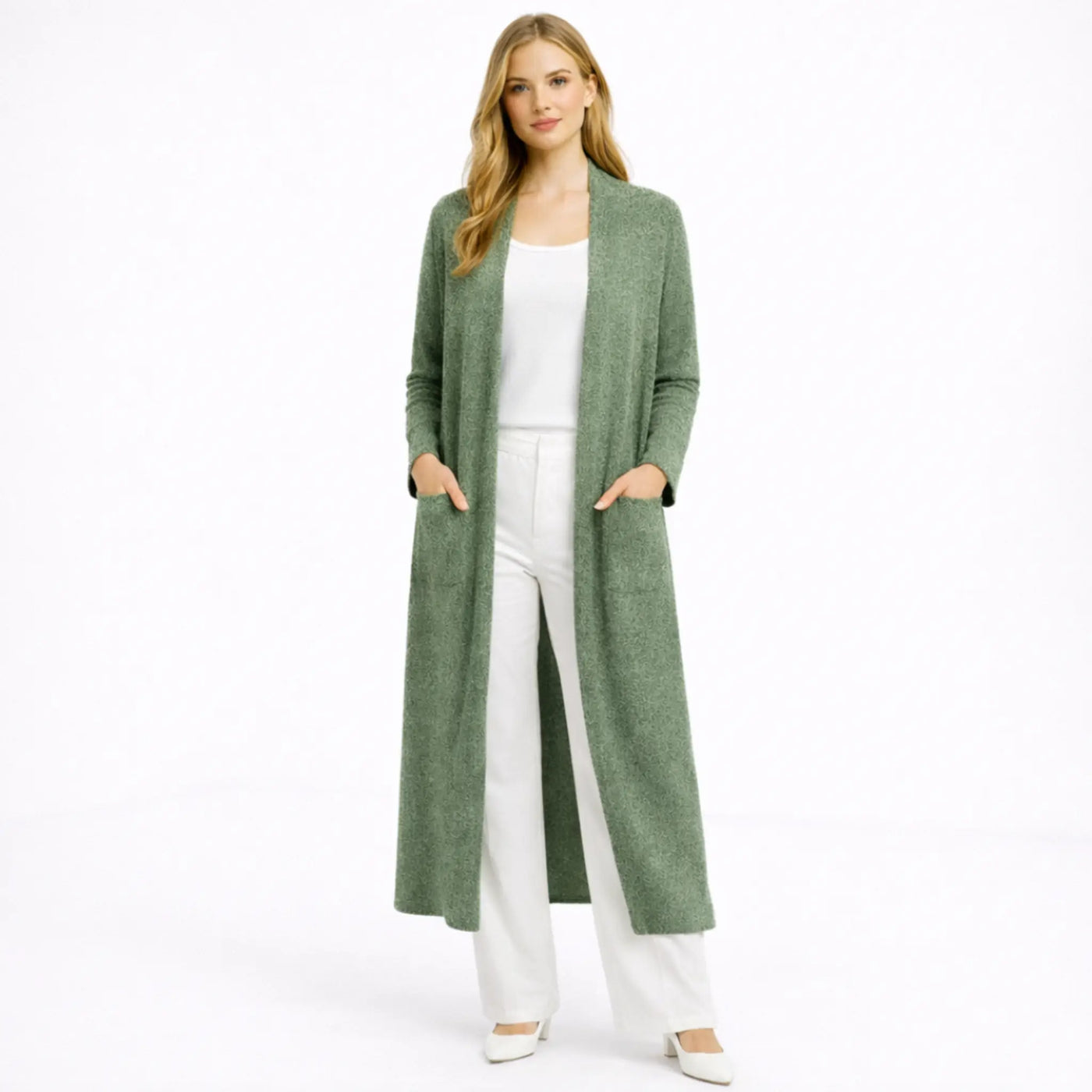 Women’s Green Long Open Front Cardigan | Elegant Layered Casual Outfit - One Size 8 - 18 / Green