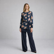 Chiffon Print Lined Navy Co-Ord Set | Elegant Lightweight Outfit for Casual & Semi-Formal Wear - One Size Fits 10-16